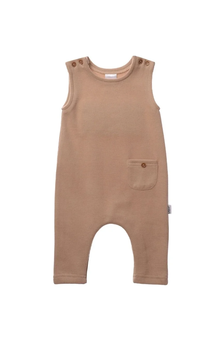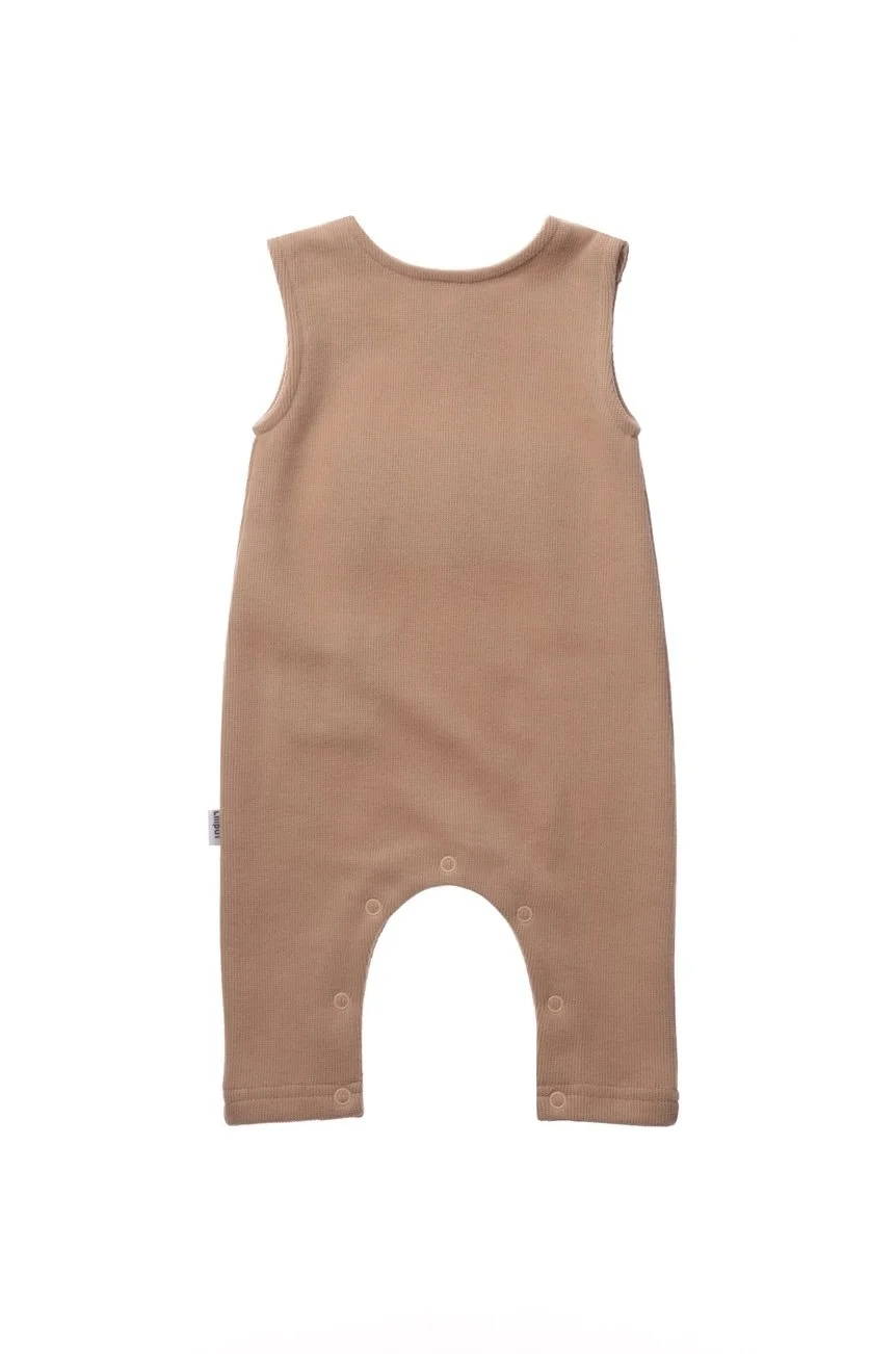 Soft rib-knit jumpsuit in a beautiful beige. The high-quality rib-knit fabric ensures a distinctively casual look. The overall can be wonderfully combined with a long-sleeve or short-sleeve shirt and is super easy to put on and take off thanks to its snap buttons in the crotch.